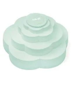 Almacenaje con compartimientos tipo flor color menta.