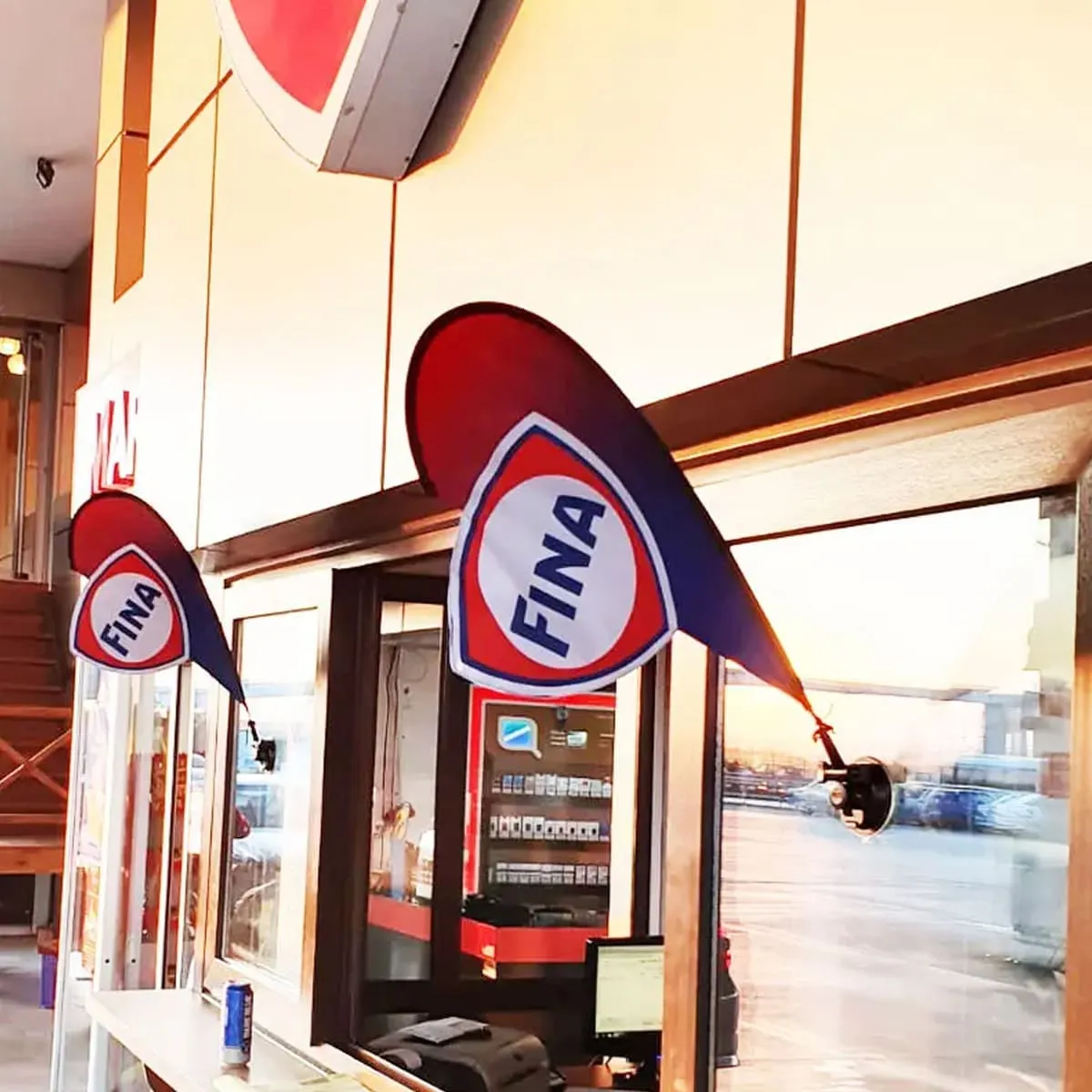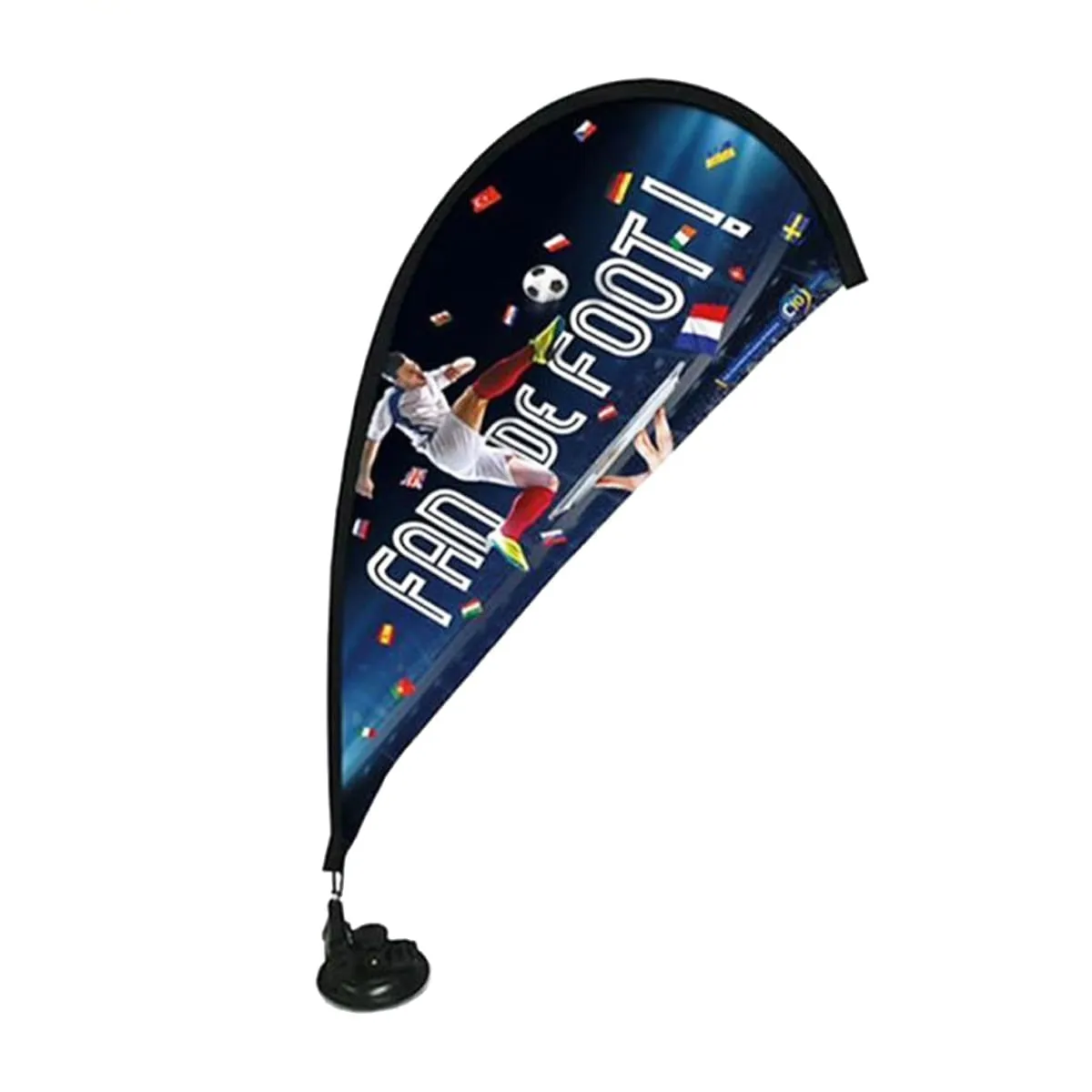 Mini banderola tipo gota con ventosa de succión. Ideal para colocar en ventanas de comercios.