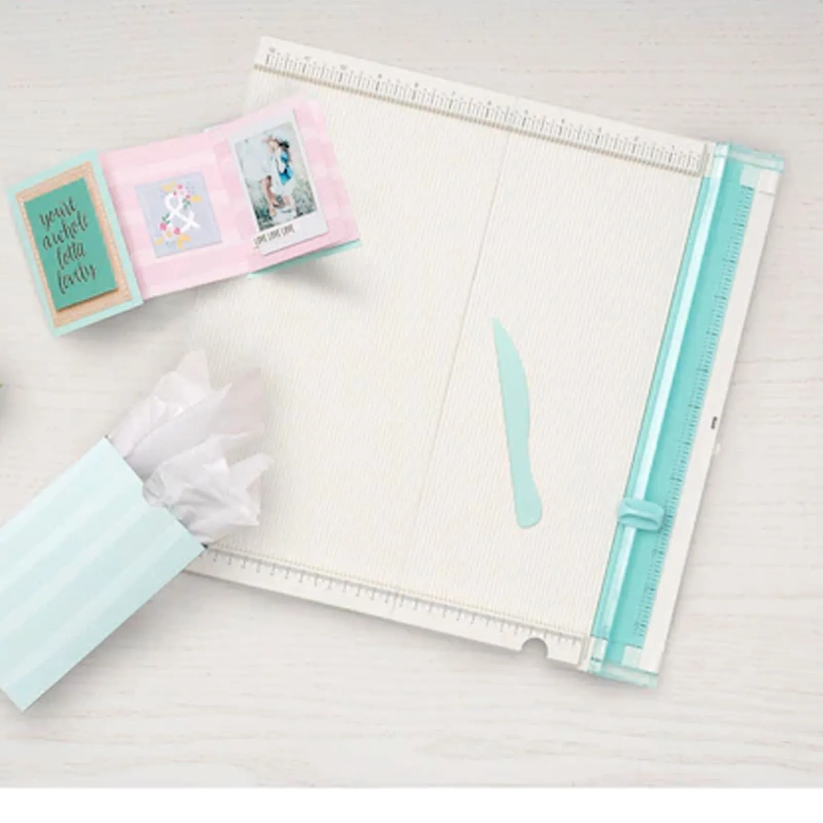 Tablero de recorte y puntuación. Ahora puede recortar y marcar con una herramienta conveniente. Este paquete contiene una unidad que se desplegará en una superficie completa de 12 x 12 pulgadas y una herramienta para marcar y doblar de 5-3/4 pulgadas.