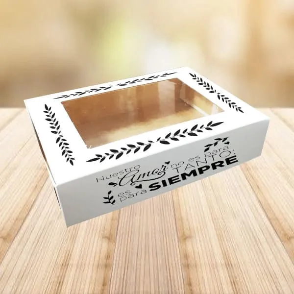 Caja de cartón blanco con ventana de celofán. Ideal para personalizar, dar obsequios o promocionar su marca.