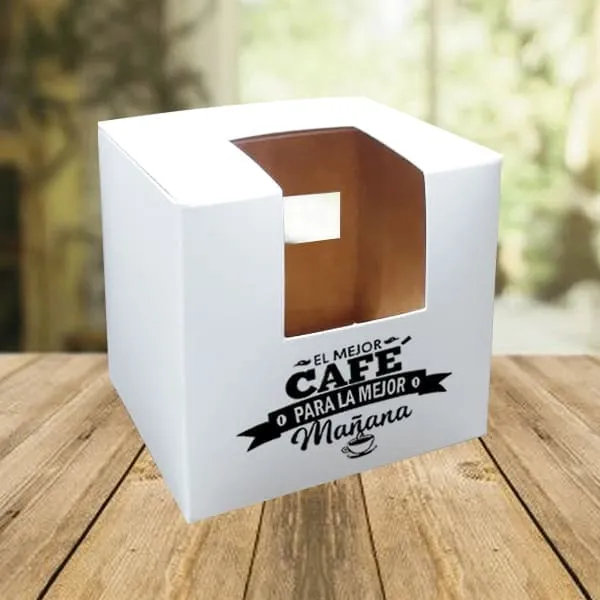 CAJA DE CARTÓN CON VENTANA PARA TAZA CERÁMICA