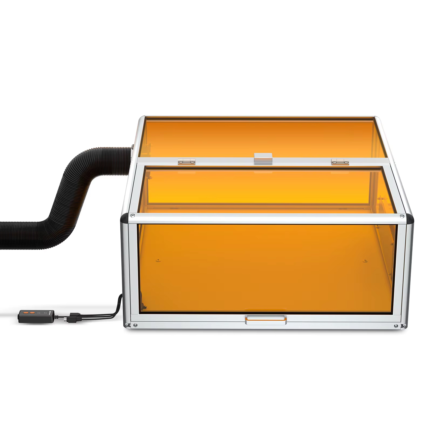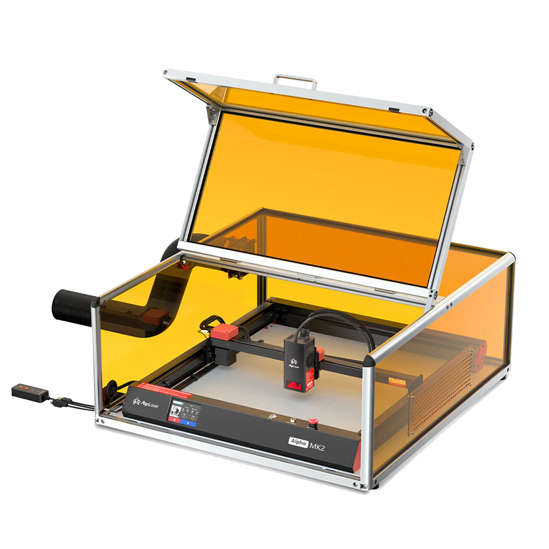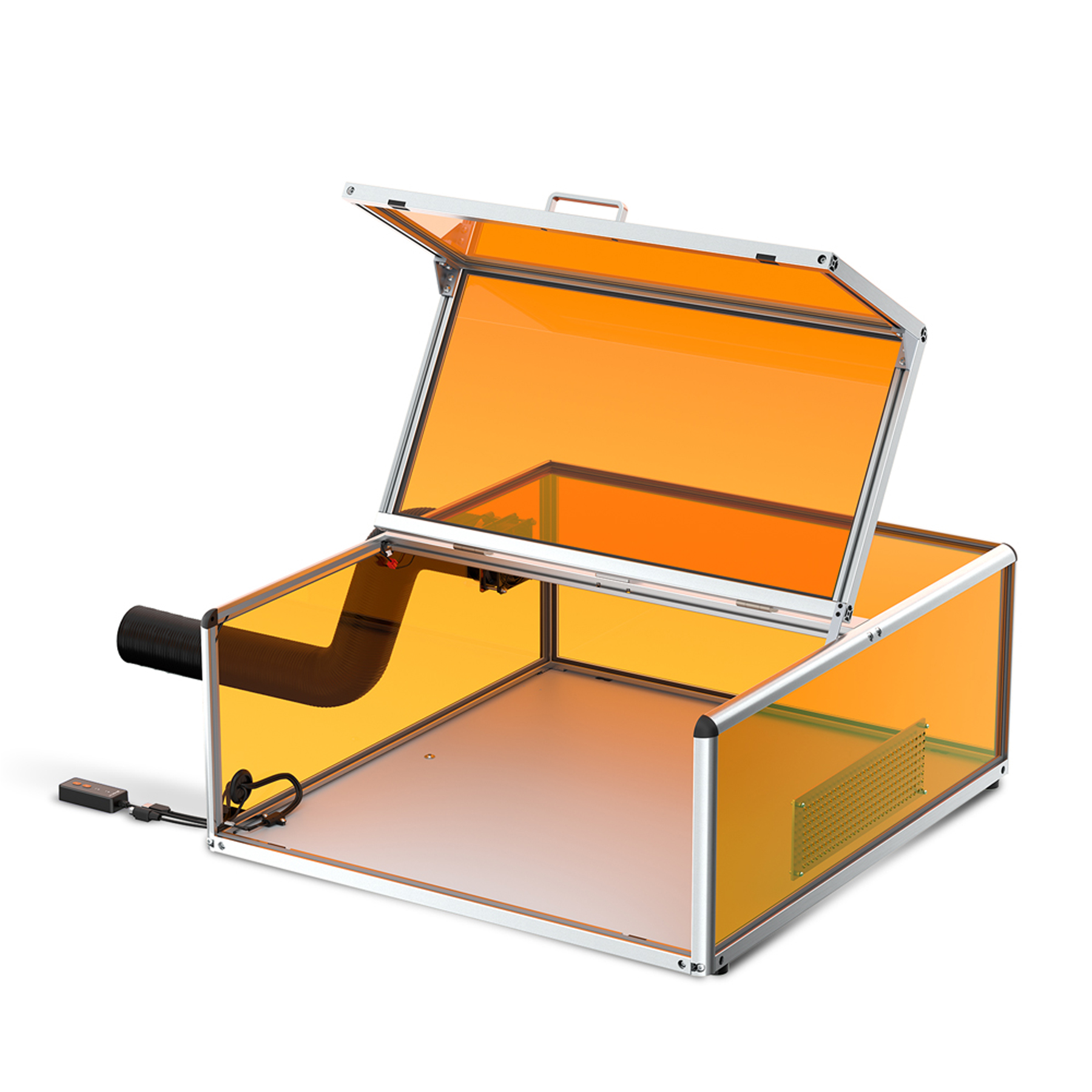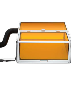 Caja protectora para equipo algolaser alpha mk2. Esta equipado con un sensor inteligente, el láser se detiene automáticamente al abrir la tapa de la carcasa, evitando la exposición accidental y garantizando la seguridad. Filtros especializados bloquean la luz láser dañina, protegiendo sus ojos sin necesidad de usar gafas protectoras adicionales. Ventiladores de extracción de alto rendimiento de 4800 rpm eliminan eficazmente el humo, los vapores y los olores generados durante el proceso de grabado.