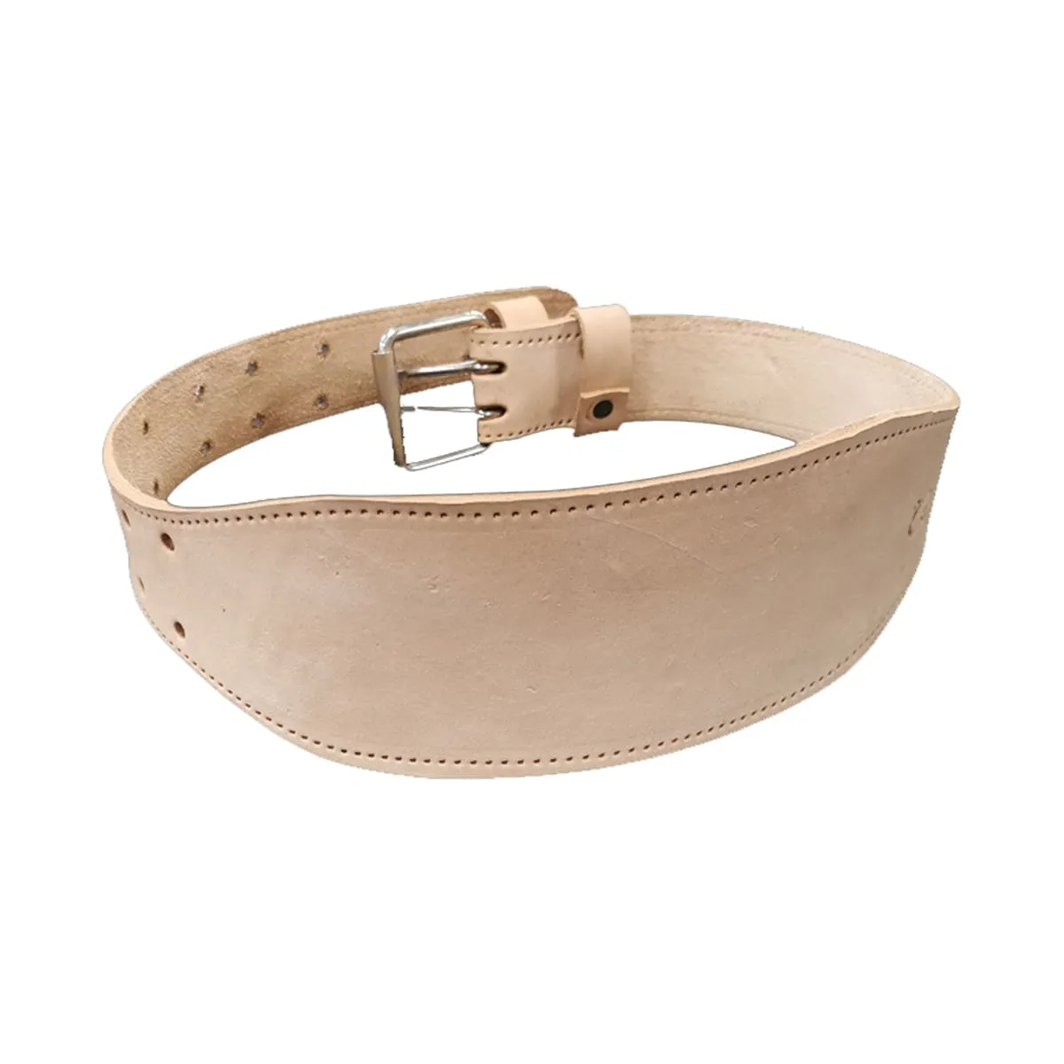 Cinturón de cuero, tipo faja para cargador con hebilla metálica cromada.