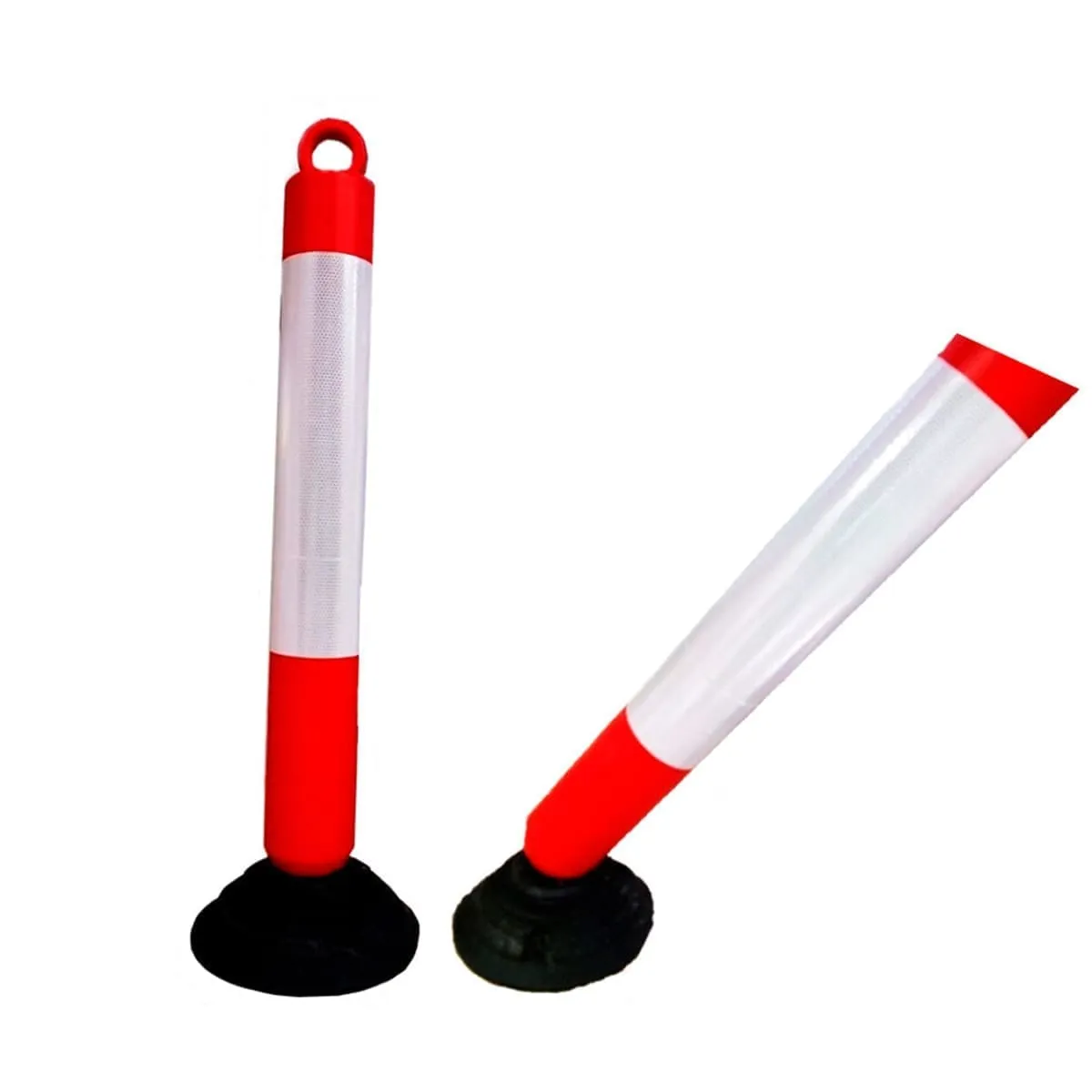 Delineadores viales, fabricado en PVC con franjas reflectivas y con base.