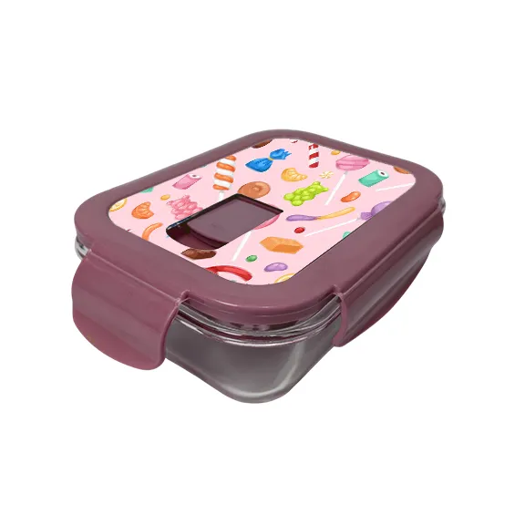 hermetico de vidrio pequeño con tapa plastica color rosado para sublimar.