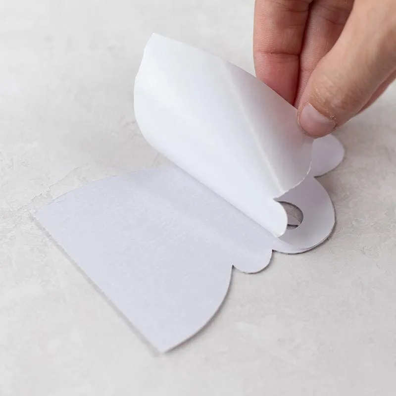 Simplemente retire las imágenes recortadas del material de respaldo y colóquelas directamente en la superficie del proyecto como una etiqueta.