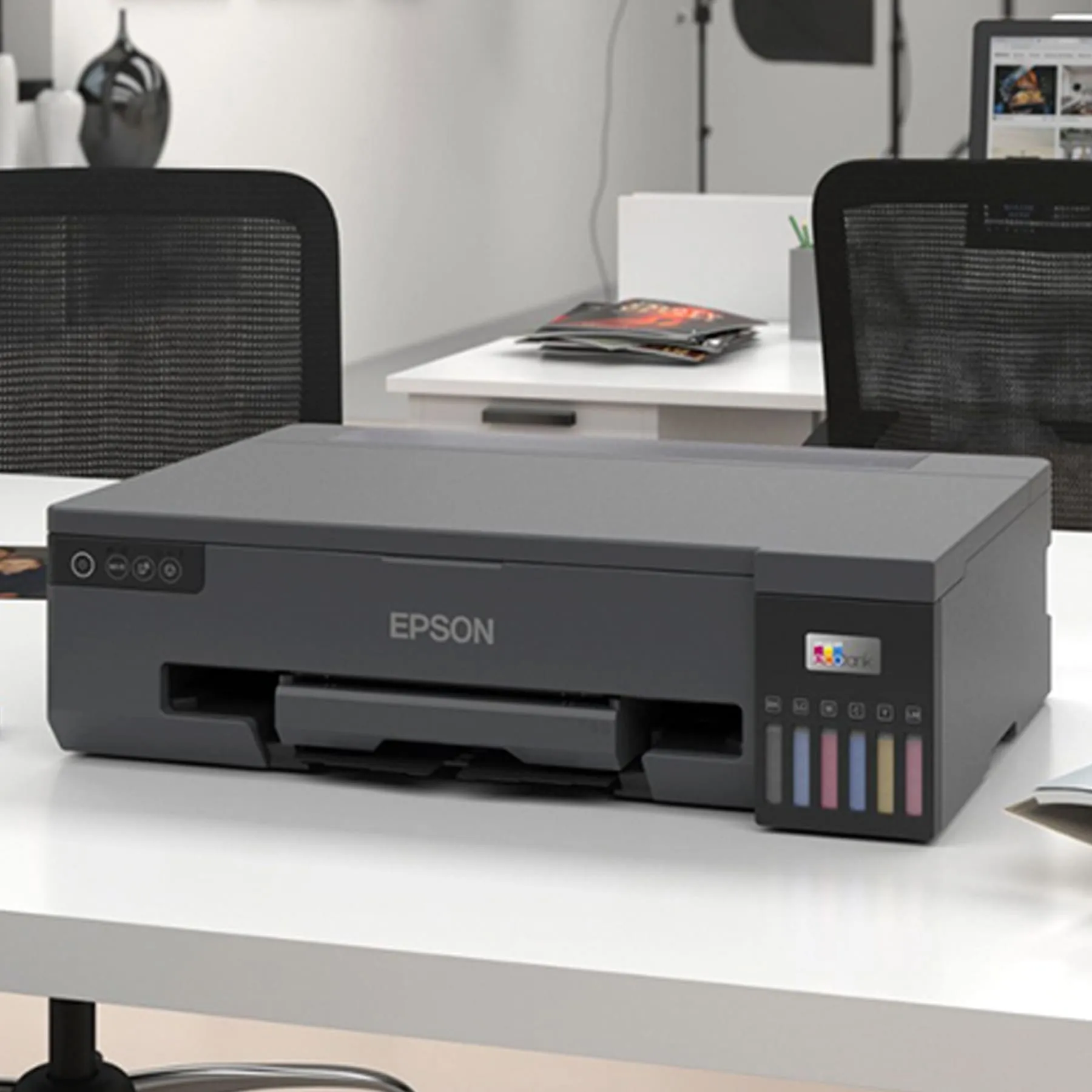 La EcoTank L8050 es una impresora fotográfica accesible y confiable. ideal para productores gráficos, entusiastas y vendedores de fotografías que buscan colores vibrantes y de alta calidad con la comodidad de la conectividad Wi-Fi, para imprimir desde dispositivos móviles con la aplicación Epson SmartPanel.