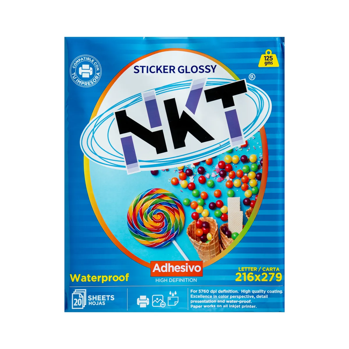 Papel adhesivo brillante compatible con impresoras de inyección de tinta. Secado rápido y fácil de manipular, ideal para fotos caseras y escolares