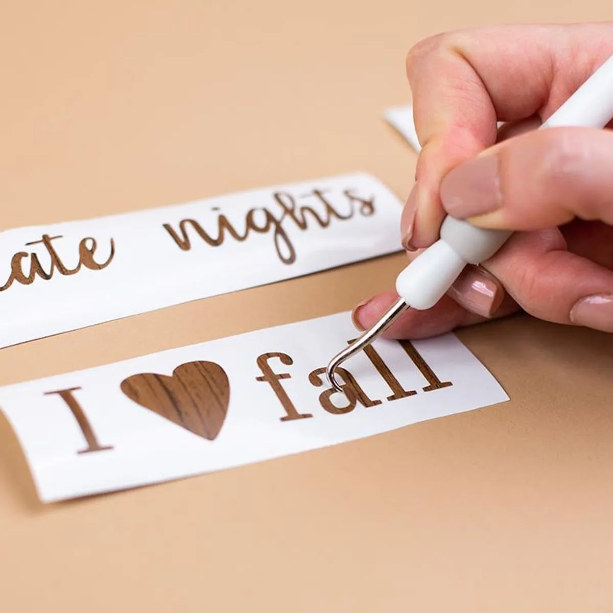 Uso recomendado con cinta de transferencia para mover la imagen recortada del respaldo del material original a la superficie del proyecto previsto.