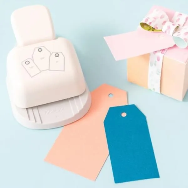 Con la perforadora 3 en 1 para etiquetas angulares puedes crear decoraciones en 3 diferentes medidas, perfectas para adornar tus proyectos de scrapbook, tus tarjetas, álbumes y muchas cosas más.