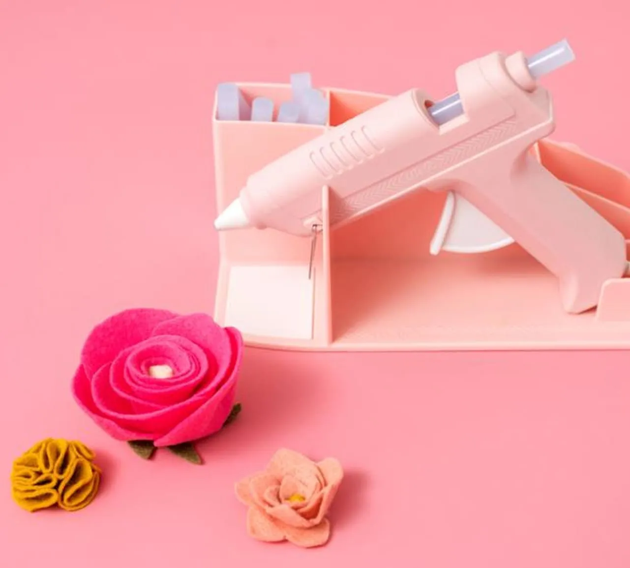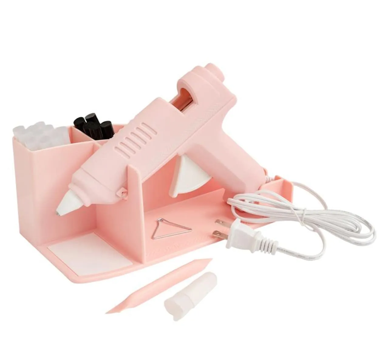 Pistola de pegamento de baja temperatura es perfecta para papel, tela, cinta, arpillera, espuma y más. Cada pistola de pegamento incluso viene con una herramienta Shaper única para empujar y dar forma al pegamento, y barras de pegamento transparente y negro para que pueda comenzar a crear de inmediato.