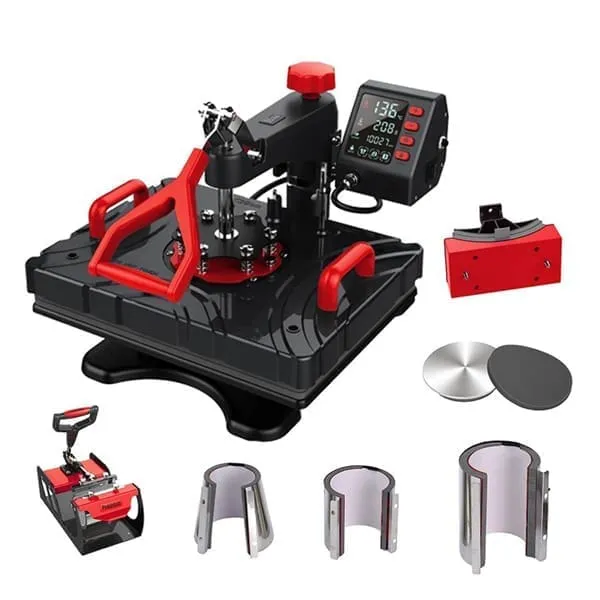 Plancha multifuncional 8 en 1. Ideal para termotransferir sobre prendas textiles, mouse pad, rompecabezas, mochilas, tazas, platos y gorras.
