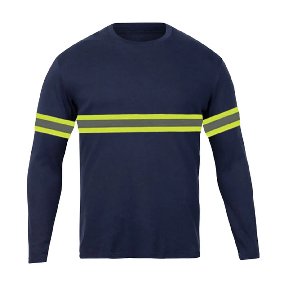 PLAYERA MANGA LARGA DE ALGODÓN GRIS CLARO CON FRANJA REFLECTIVA