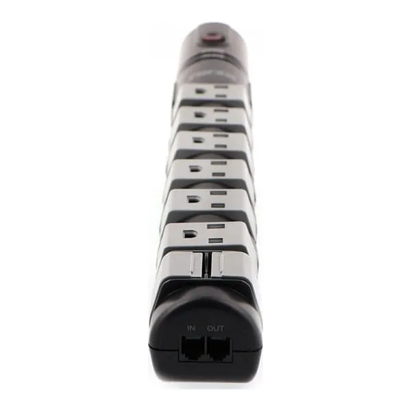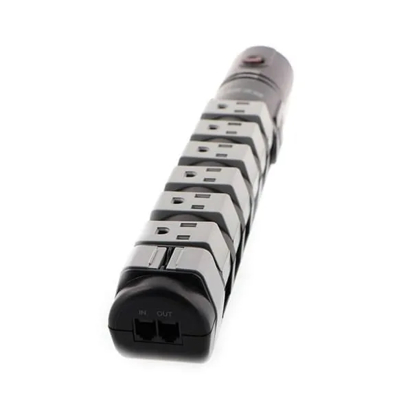 El supresor de picos para el hogar y la oficina resguarda electrodomésticos, equipos audiovisuales y electrónicos delicados contra el efecto nocivo de sobrecargas y subidas repentinas de tensión asociadas con el suministro. El diseño único de los tomacorrientes en sus seis configuraciones distintas resulta muy práctico y versátil.
