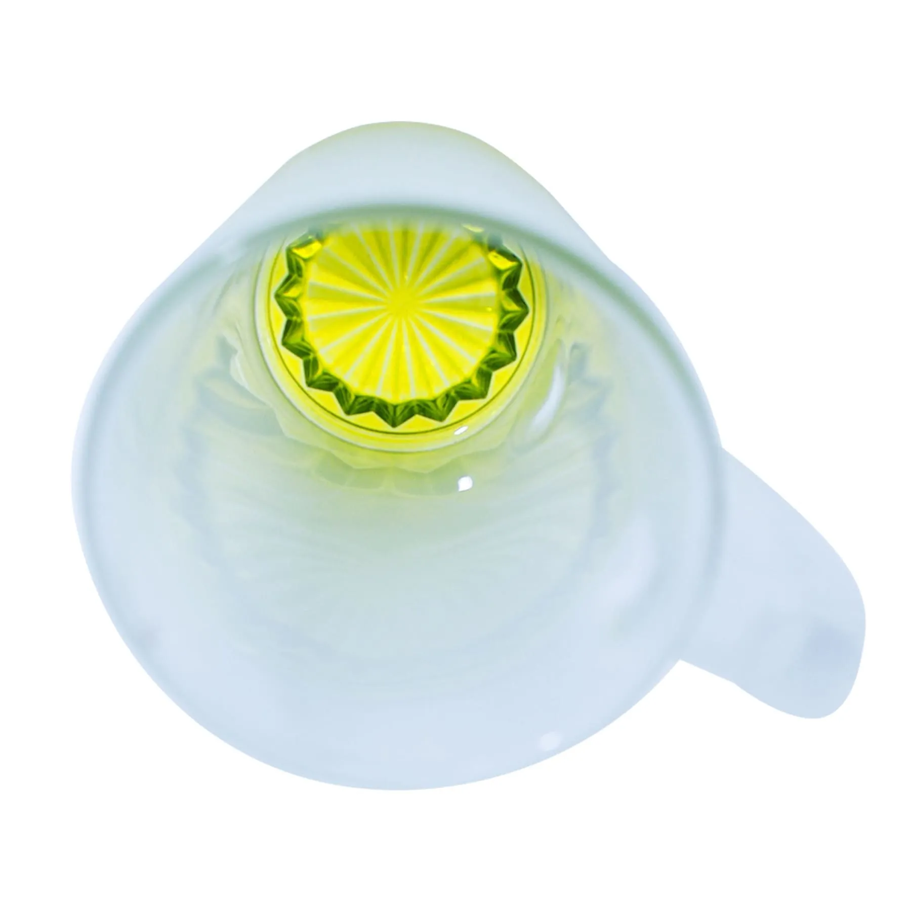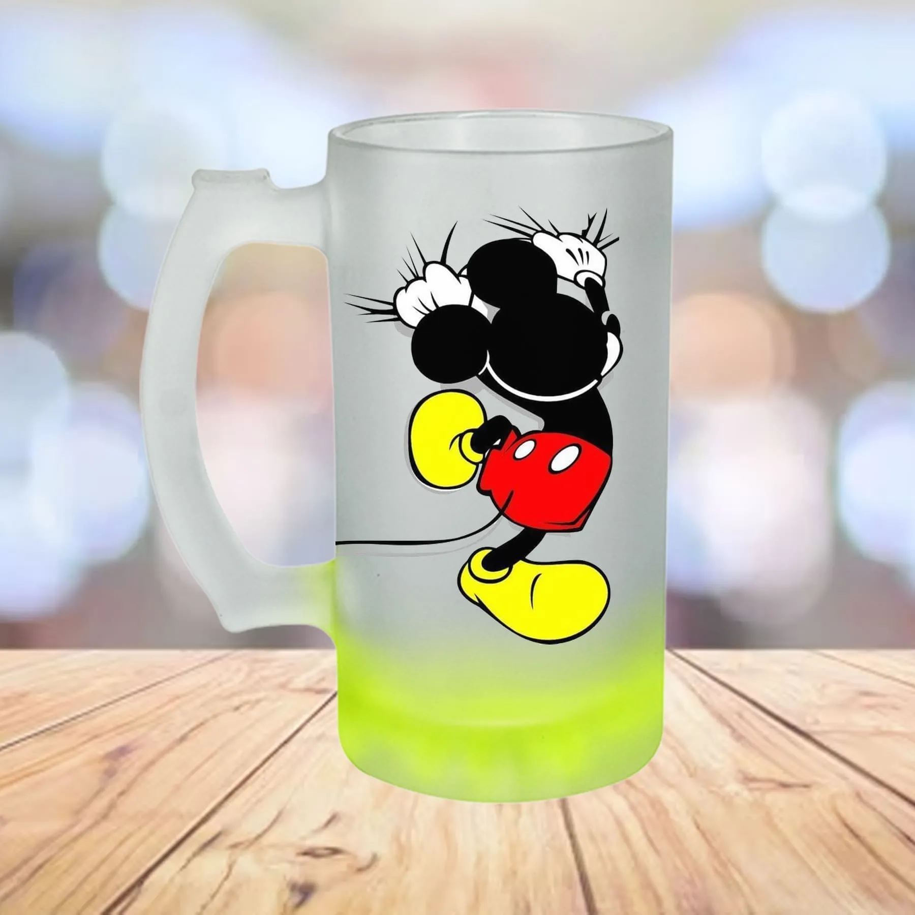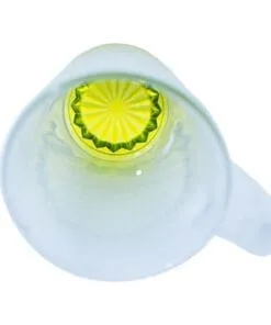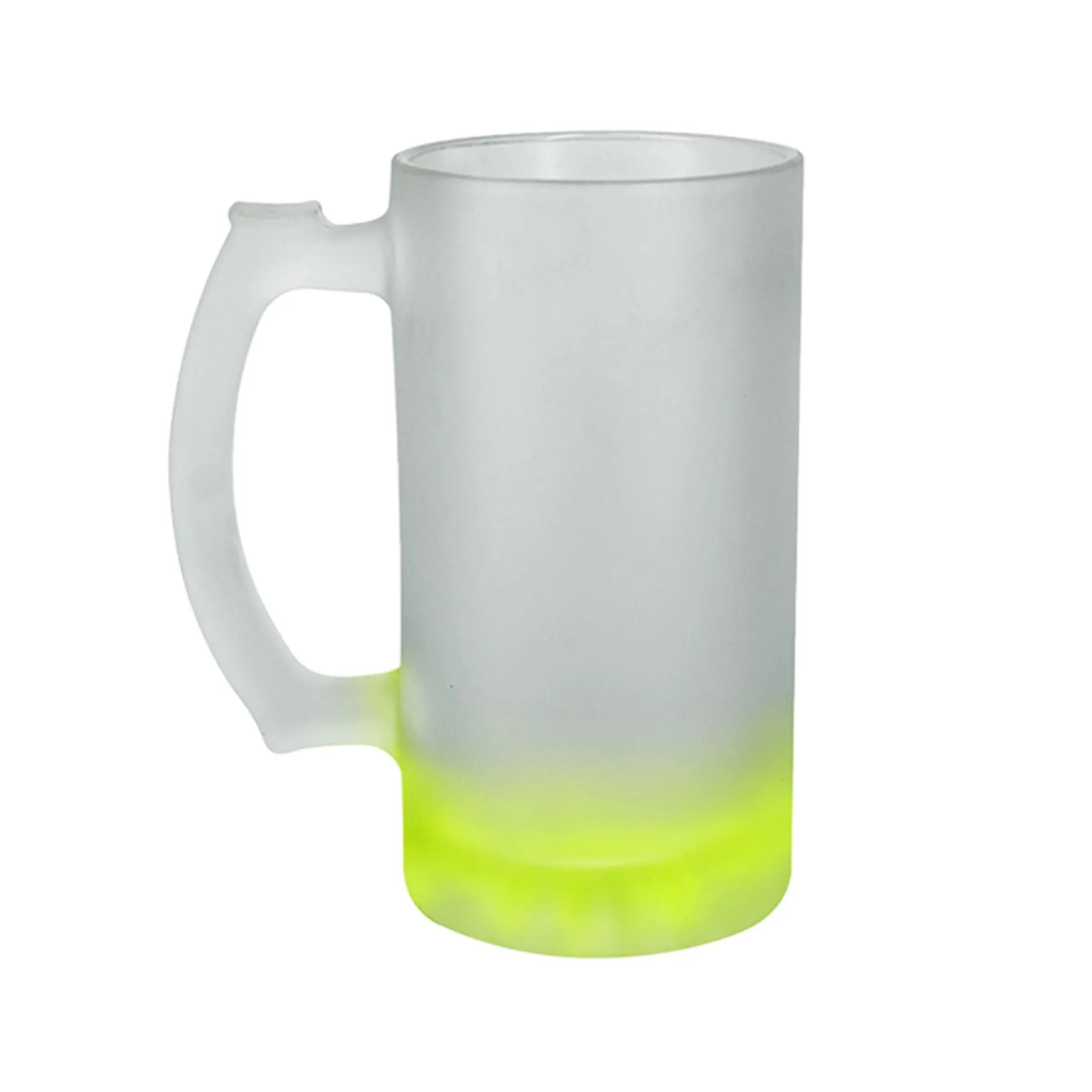 Tarro de vidrio sublimable nevado con base de color amarillo.
