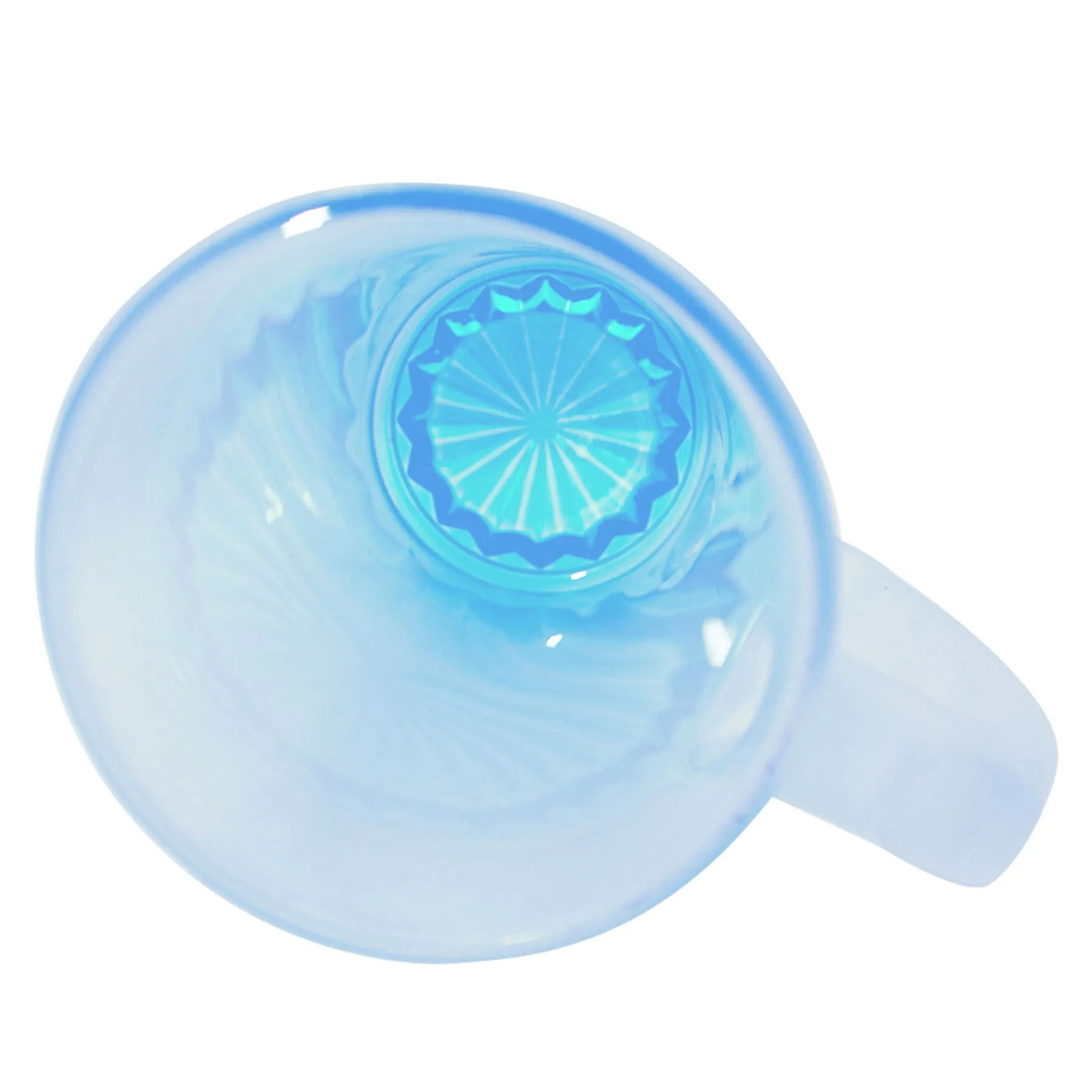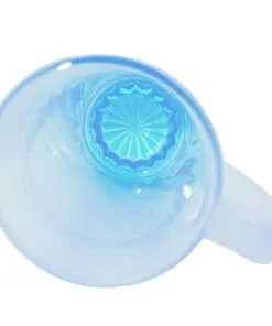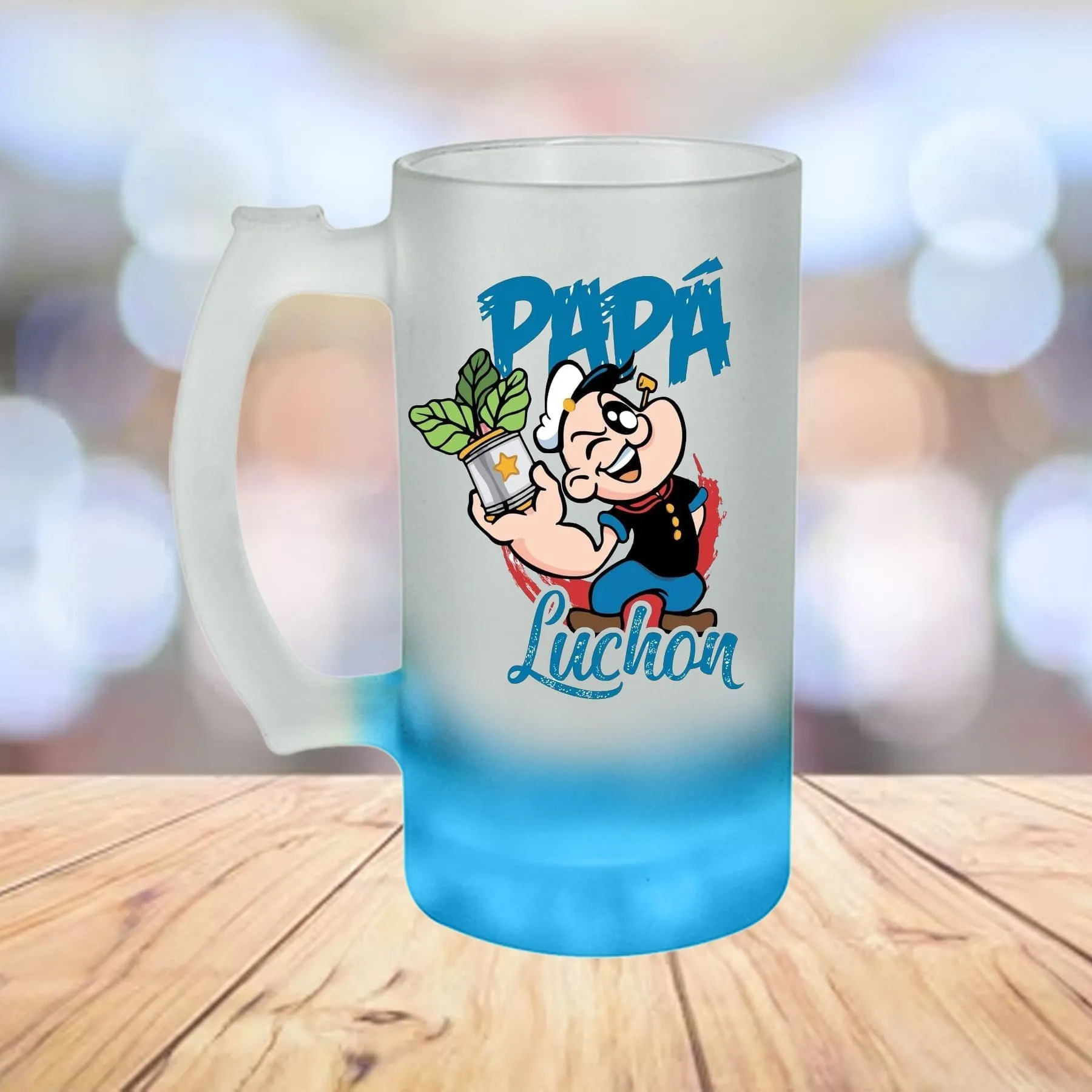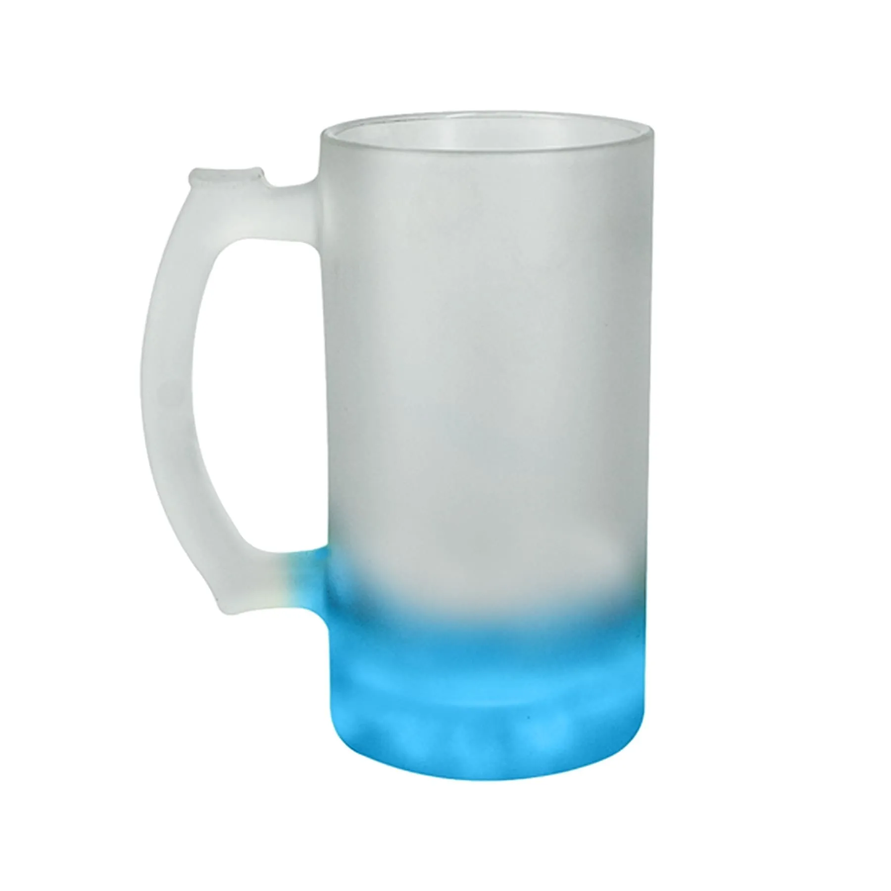 Tarro de vidrio sublimable nevado con base de color celeste.