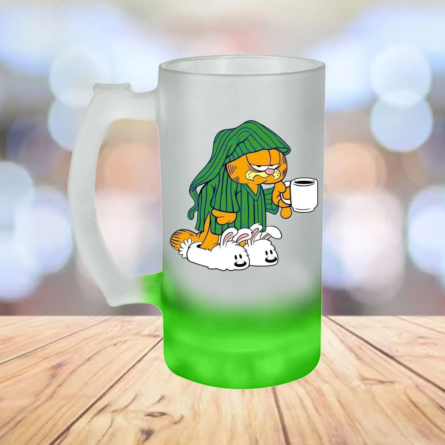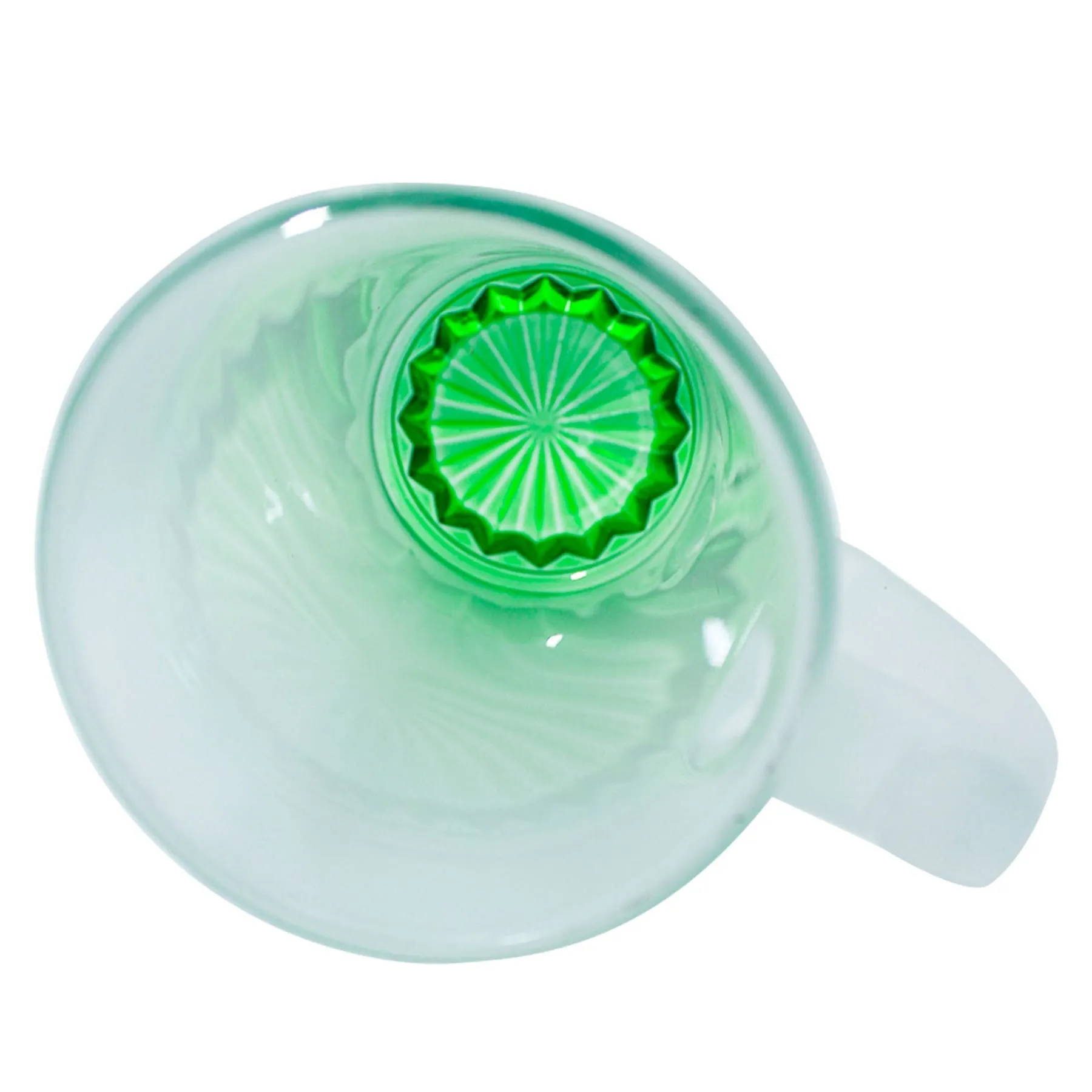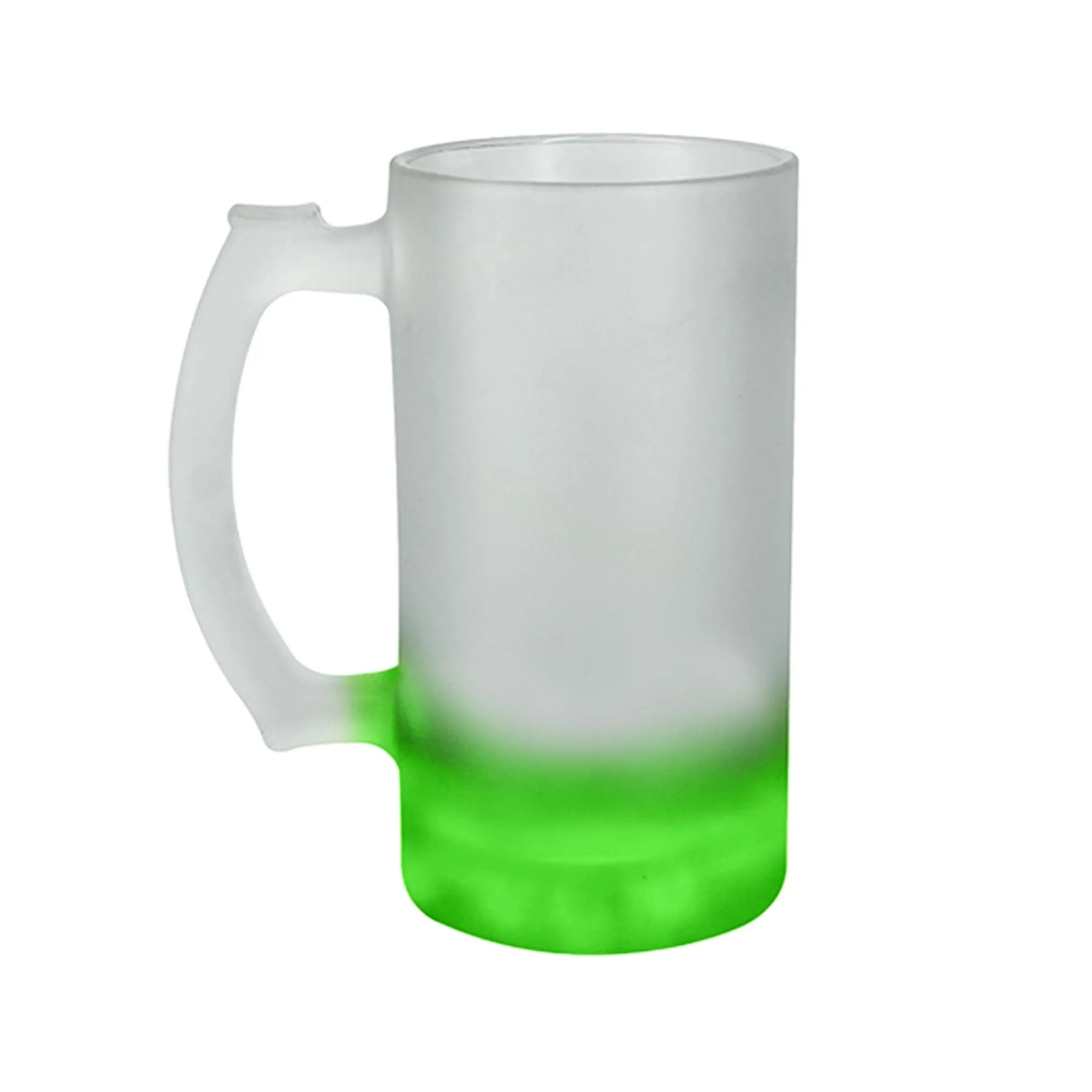 Tarro de vidrio sublimable nevado con base de color verde.
