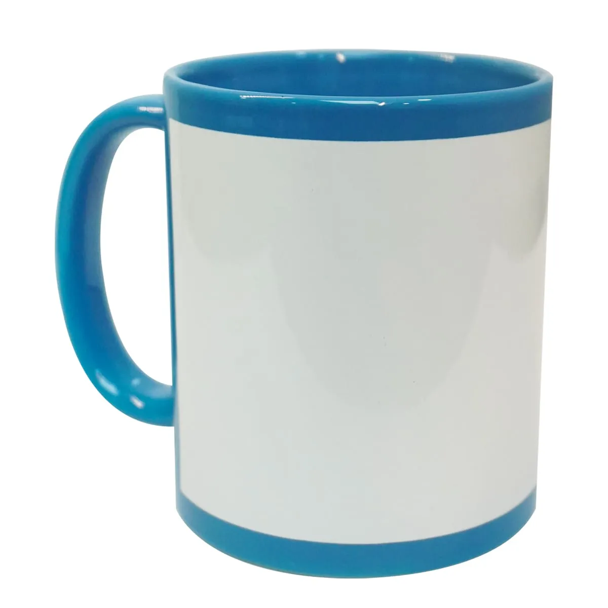 Taza de color celeste con ventana sublimable.