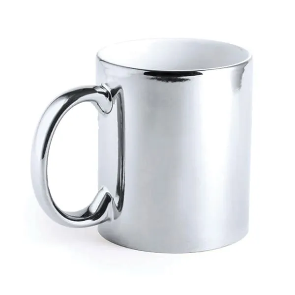 Taza metalizada color plateado para sublimar.