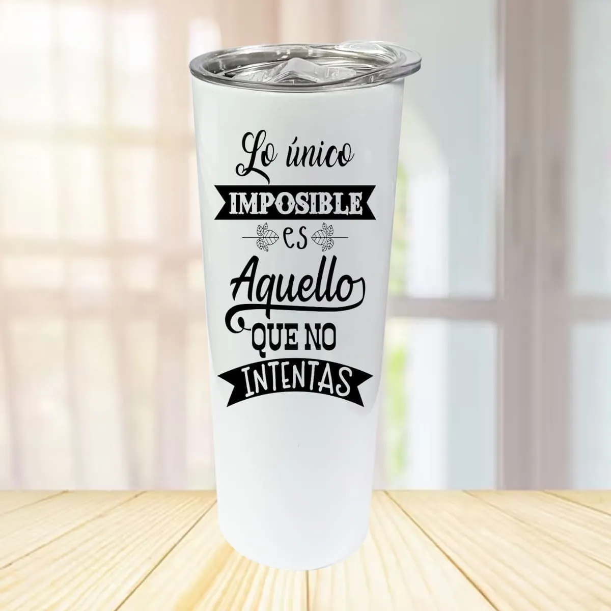Tumbler de acero inoxidable color blanco. Ideal para personalizar.