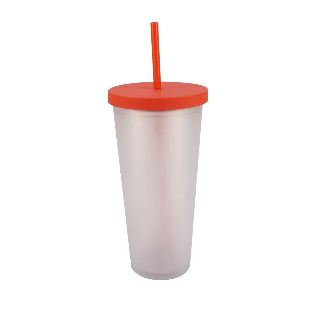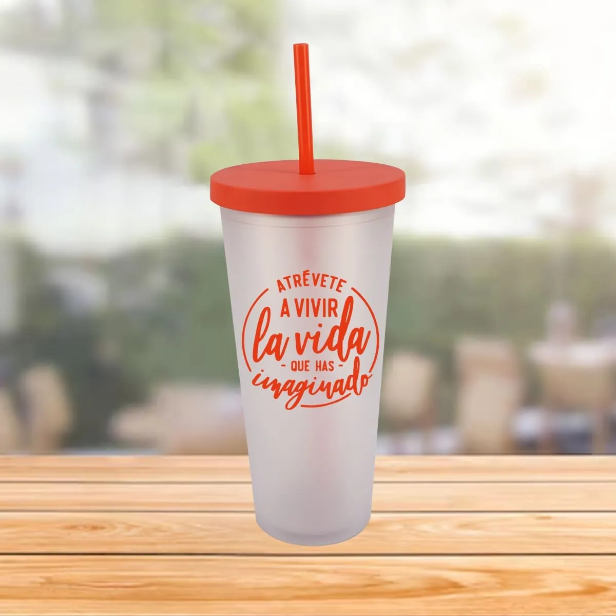 Vaso plástico con tapadera y pajilla color rojo. Ideal para personalizar.