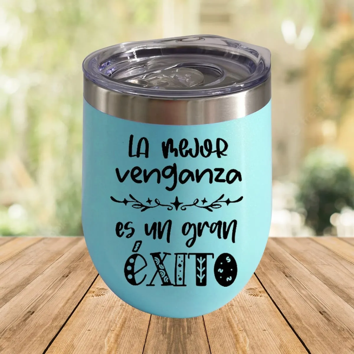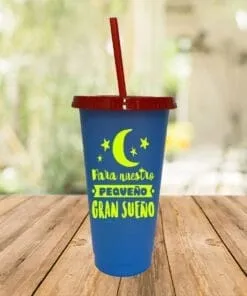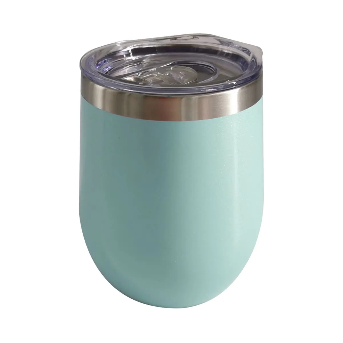 Vaso de acero inoxidable de color aqua con efecto glitter. Ideal para personalizar.