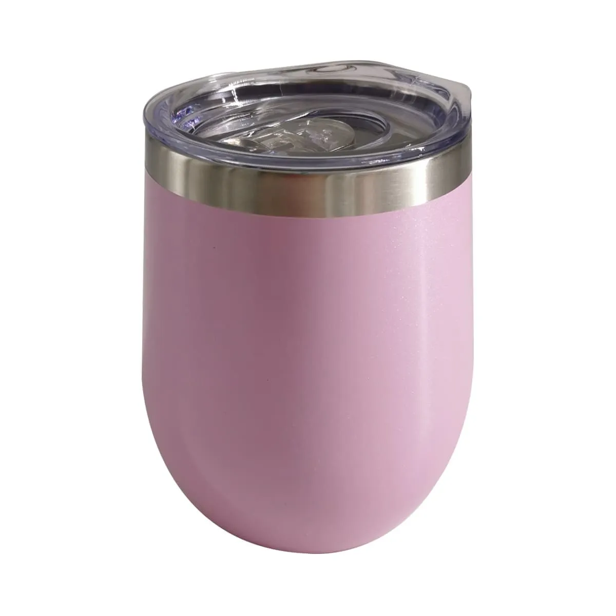 Vaso de acero inoxidable de color rosa con efecto glitter. Ideal para personalizar.